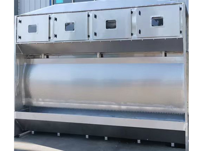 产品简述:水帘柜(喷漆台)主要是由自吸水泵循环抽水往水帘板上均匀的流下来,喷枪喷出来的废气(漆物)被水帘板上的水打到下面水泄里。再有少部分的废气(漆物)被上面的风机通过排风管道排出车间外面。使车间内没什么废气(漆物)给大家一个好的工作环境。保护喷漆操作者的身体健康及达到保护环境的效果。
